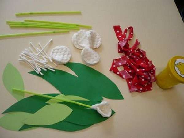 Ватные диски — простой, удобный, доступный материал, из которого тоже можно сделать цветочки, как показано на фотографиях нашего каталога. При необходимости, их окрашивают разными цветами.
