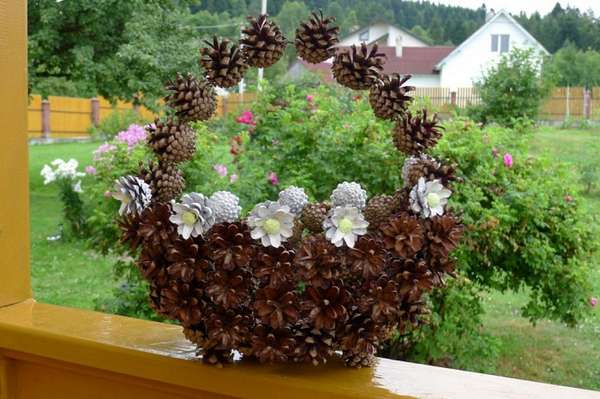 Замечательные поделки-подарки своими руками мы постарались представить в статье. Например, корзина из шишек. Сделать ее довольно легко: дополнительно понадобится пластиковое ведерко, термоклей, с помощью которого шишки будут крепиться. Сформировать корзинку также несложно, используя проволоку, соединяющую шишки в один ансамбль.