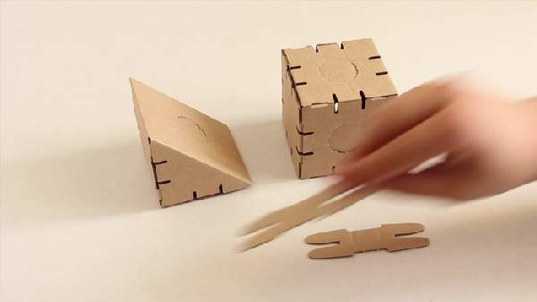 Такие легкие поделки своими руками делаются очень просто, и поскольку они ориентированы, в первую очередь, на детей, то вы можете предложить ребенку лично участвовать в создании игрушки. Идеи для изготовления игрушек-конструкторов из картона смотрите ниже.