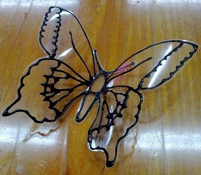 Шаг 4. После того, как контур нашей бабочки высох, вырезаем её и немного выгибаем крылышки вверх.