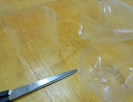 Шаг 1. Отрезаем от пластиковой бутылки дно и верхушку.