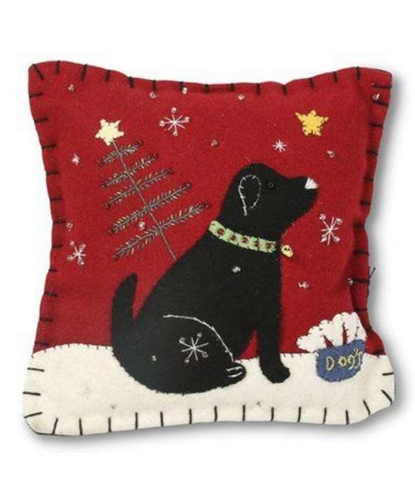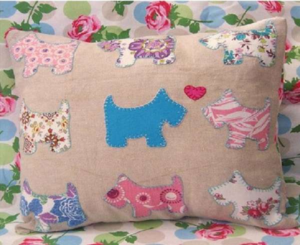 Возьмите готовую имеющуюся в доме подушку и обшейте ее вырезанными из фетра или другого плотного материала, собачками, как показано на фото.