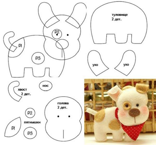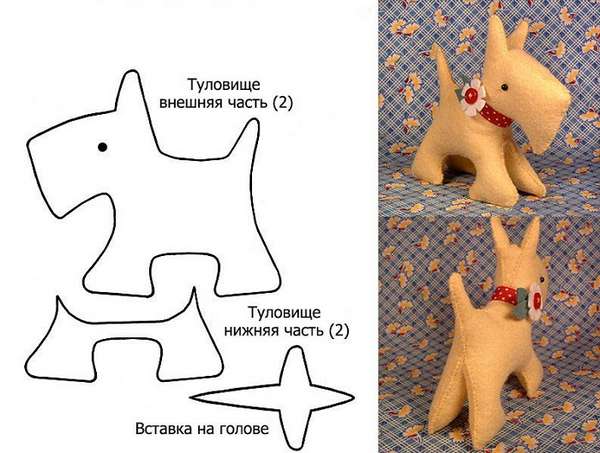 Принято считать, что ублажая владыку наступающего года, Вы обеспечиваете своей семье благополучие. Поэтому предлагаем воспользоваться нашими советами — изготовить поделки собачки своими руками. Один из простых способов — сшить их, используя фетр. В нашей статье мы постарались собрать некоторые выкройки, по которым Вы сможете изготовить симпатичных разноцветных песиков. Фетр — самая удачная ткань в данном случае: она прекрасно держит форму, легко обрабатывается и имеет обширную палитру ярких цветов. Сшейте плоских небольших собачек для елки или же объемных песиков — они станут новогодним декором и игрушками для Ваших малышей.