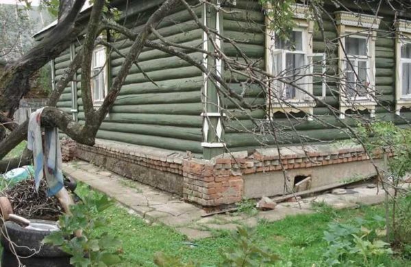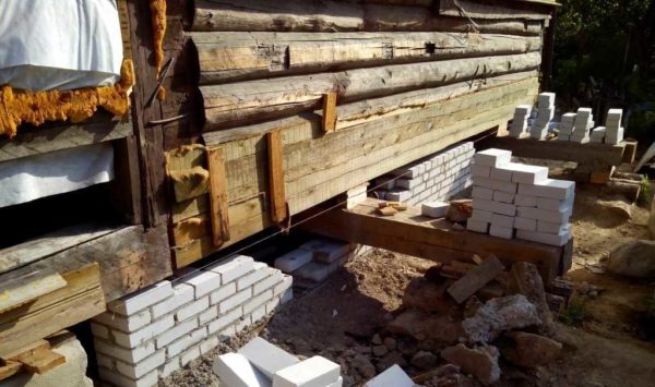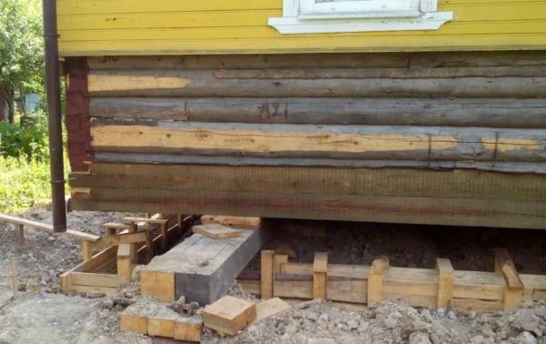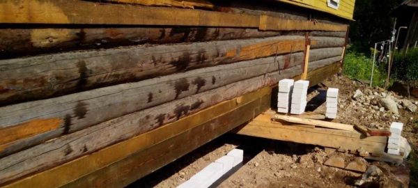 При проблемах с фундаментом выход — поднять деревянный дом и провести замену или реконструкцию основания
