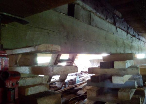 Нижние венцы в срубе сгнили, их перед подъемом удалили и заменили брусом