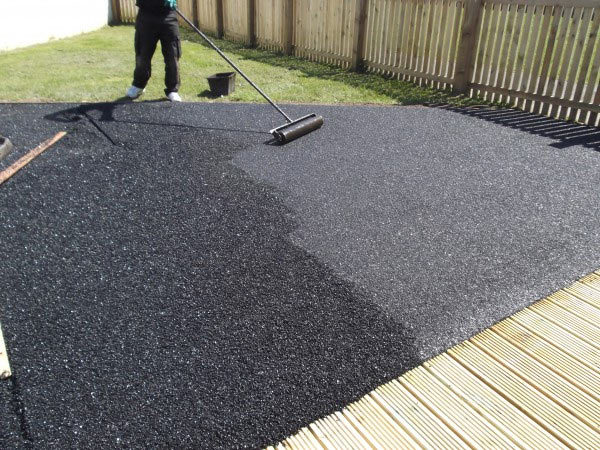 Никаких особых секретов укладки нет. Если вы когда-нибудь работали с бетоном, то это что-то очень похожее. Укладывать можно на утрамбованный мелкий гравий, песок, отсыпку. Отлично подходит бетон и асфальт в любом состоянии. Что хорошо, что их даже не надо выравнивать. Вообще, большое количество неровностей увеличивает расход крошки, а это затратно по деньгам. Поэтому многие предпочитают предварительно залатать предполагаемое место нанесения.