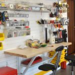 Наверное, самое большое количество самоделок для гаража связано с оборудованием рабочего места и систем хранения инструмента. Причем полки и стеллажи в гараже — не единственный способ решить эту задачу. В первую очередь надо решить, где будет располагаться рабочее место. Есть три варианта:
