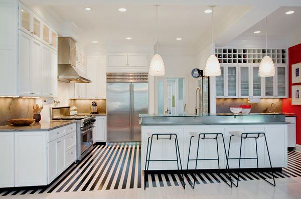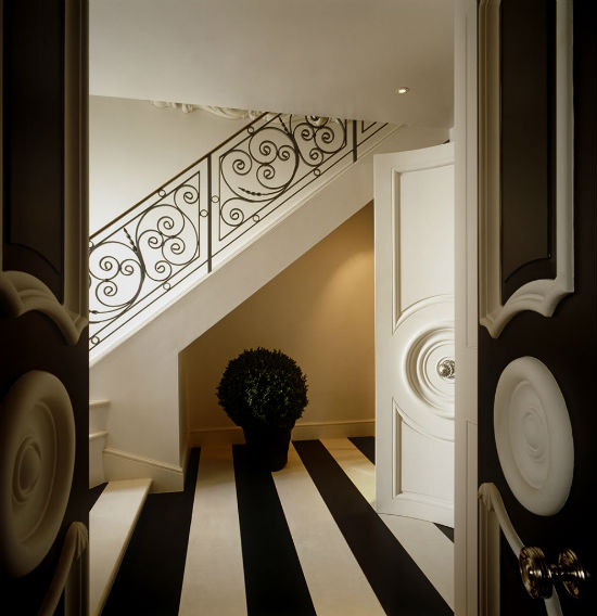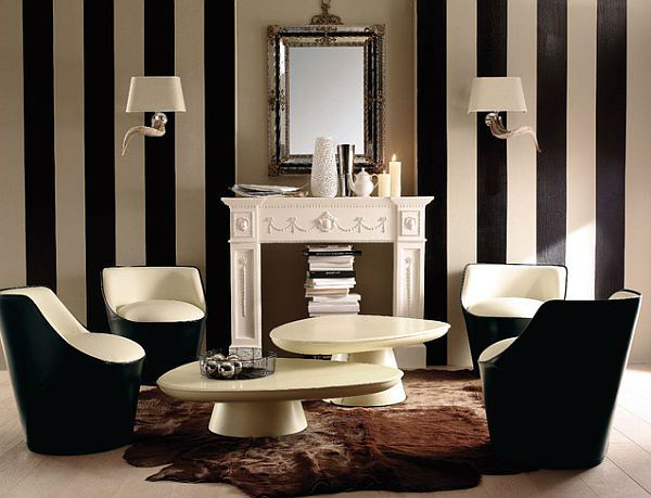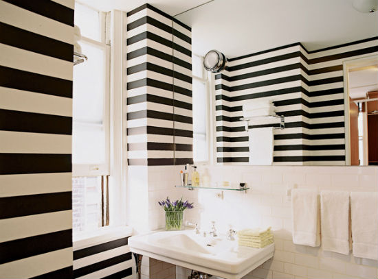 • Черно-белые полосы сделают интерьер более строгим.