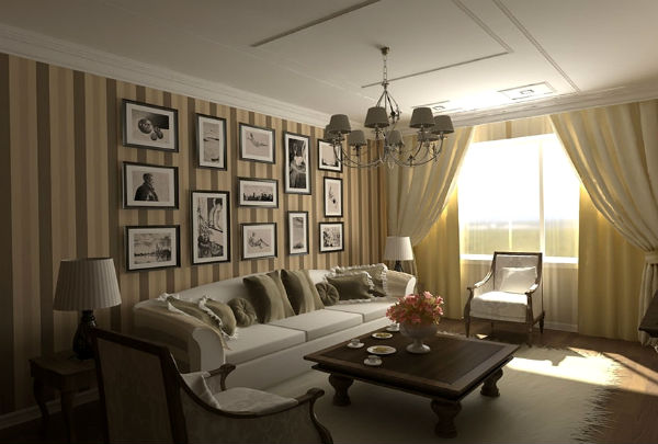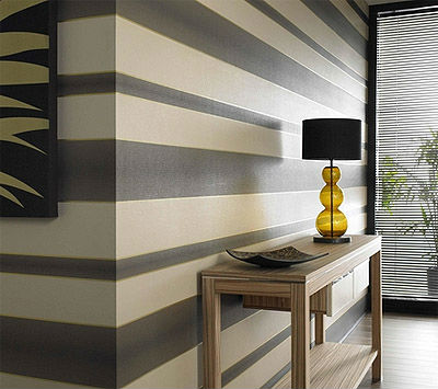 • Широкие полосы способны поглощать параметры помещения, поэтому их лучше располагать на стенах большого по площади помещения.