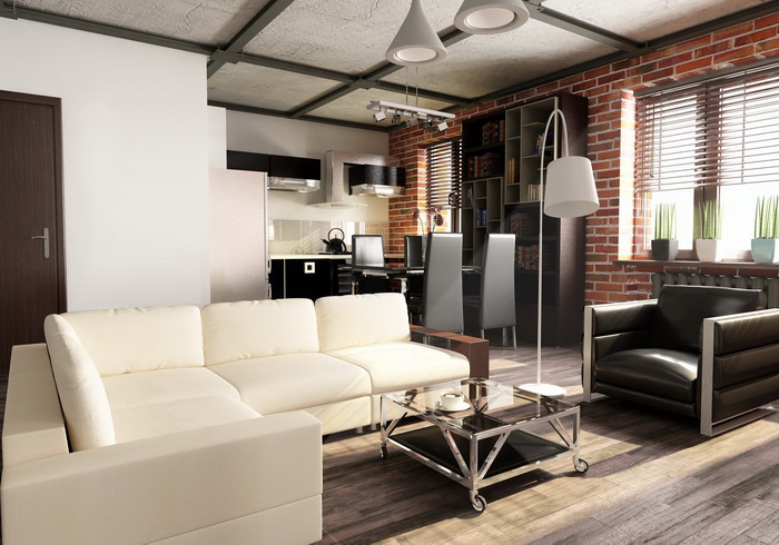 Не надо бояться, что и без того невысокий потолок окажется ещё ниже. Наоборот контрастное сочетание создаст глубину и визуально сделает потолок выше. Также с помощью балок можно провести дополнительную проводку и скрыть её, сделать интересное освещение. Подчеркнуть определённые зоны в комнате. Наконец воплотить мечту и создать интерьер в полюбившемся стиле лофт, например.
