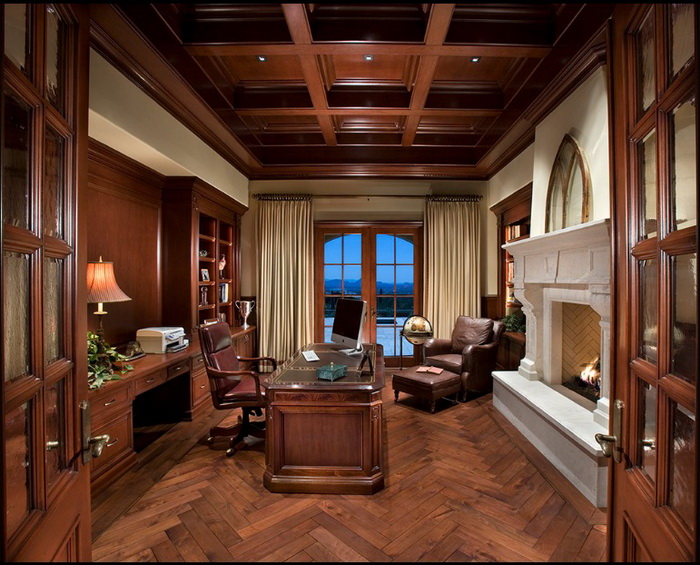 Совсем иначе выглядят балки, которые украшают потолок кабинета где-нибудь в английском доме. Это благородное дерево, красиво и хорошо обработанное. Иногда они пересекаются и образуют кессоны, украшенные деревянными панелями. Всё очень красиво и благородно.