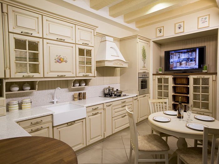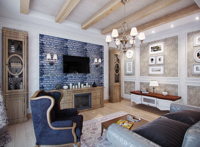 Стиль прованс и средиземноморский стиль — это воздушные, лёгкие, пропитанные солнцем интерьеры. Отличительная черта — балки на потолке обычно выбелены в тон потолка или представляют собой старое, словно поседевшее, грубо обработанное дерево. Очень эффектно смотрятся потемневшие балки на светлом просто оштукатуренном потолке.