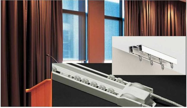 Потолочные карнизы для штор профильного типа могут быть с управлением и липучкой для ламбрекена или декоративной планки