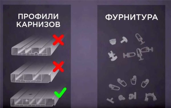 Профильные потолочные карнизы имеют корпус из пластика или алюминия, в котором сформированы желобки. Иногда называют их «рельсы» так как очень похожи по назначению. В желобки вставляются крючки специальной формы. Есть еще бегунки. Они отличаются наличием вращающихся колесиков. Второй вариант стоит дороже, но и передвигаются они в разы легче. К этим бегункам /крючкам крепятся шторы.