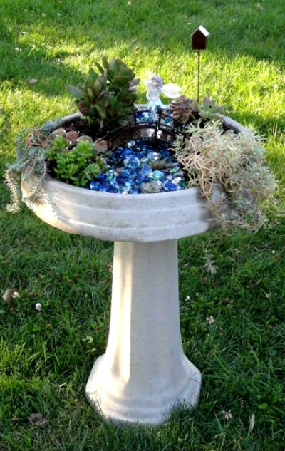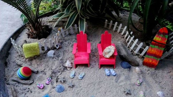 • Прудики и фонтанчики без воды (воду имитируют голубыми камешками);