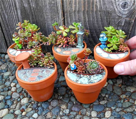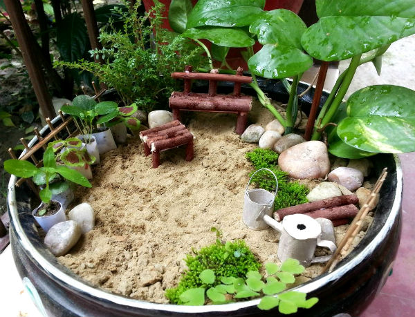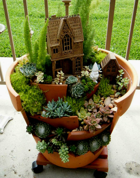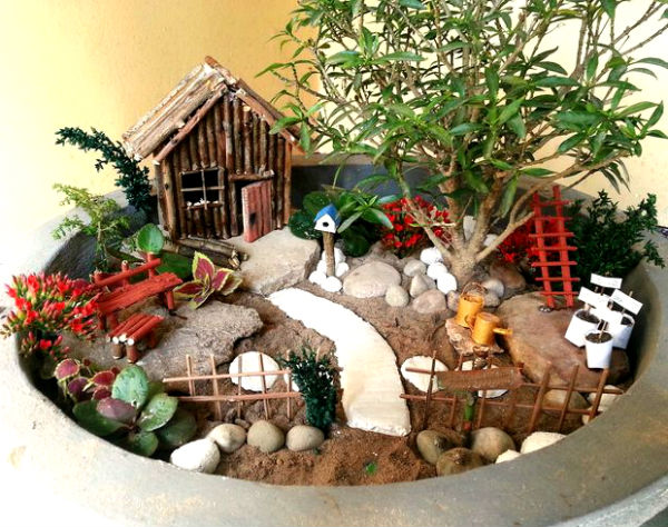 Такой мини садик в горшке можно поставить на постамент возле беседки, чтобы гости могли рассматривать его крошечные детали, также вазон можно установить возле порога или создать два похожих сада и разместить вазоны по бокам от входа в дом. Как бы там ни было, а место такой красоте точно найдется!