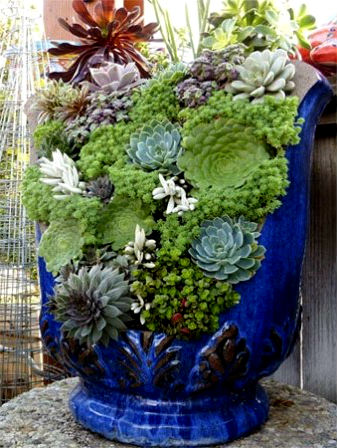 Конечно же все будет зависеть от Вашей фантазии, но на сегодняшний день самыми актуальными считаются четыре основные идеи создания мини сада, первая из них подразумевает расположение всех элементов непосредственно на единой плоскости крупного вазона, вторая – расколотый небольшой горшок с расположением элементов не только по горизонтали, но и по вертикали (об этом ниже расскажем более детально), третья – многоярусный вазон, четверная –горшок наполненный водой.