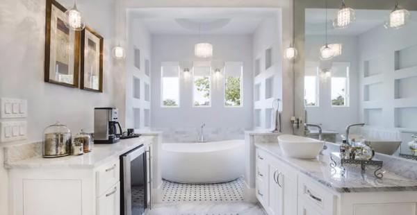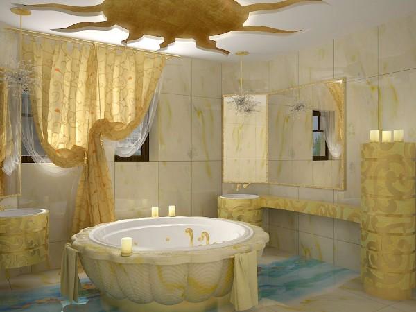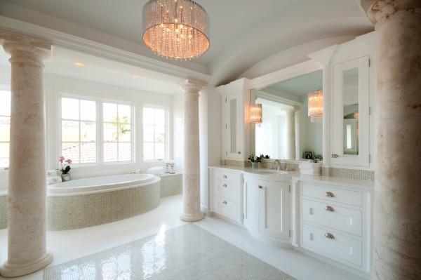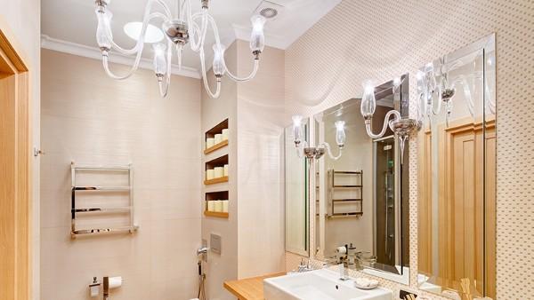 Привлекательная люстра в ванной комнате — 40 фото в интерьере