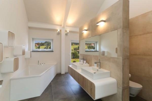 Функциональность, практичность, визуальное увеличение — ключевые понятия, характеризующие данный стиль. При оформлении ванной комнаты в скандинавском стиле делают упор на светлые тона, а это значит, что и света в таких помещения нужно много. Создать должное освещение вам помогут правильно расставленные софиты и споты.