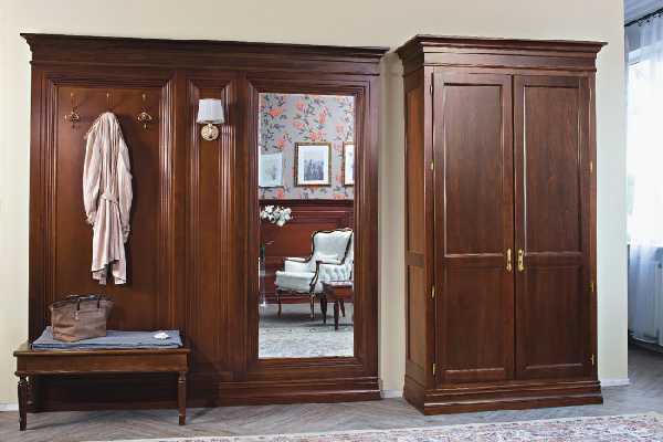 Конечно, можно купить недорогую прихожую современного производства из МДФ, выдержанную в классическом стиле. Но настоящая классика предполагает натуральное дерево. Прекрасный вариант — использовать настоящую мебель «с историей», бережно и с любовью отреставрированную. В этом случае дизайн прихожей обретет подлинную уникальность, неповторимость и благородство.