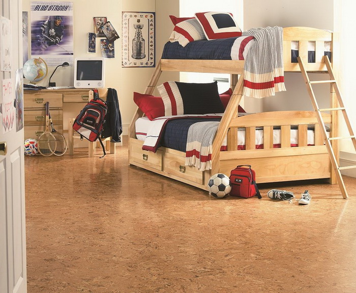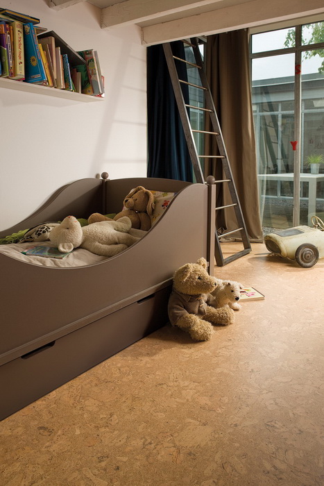 Пробка — самое популярное напольное покрытие для детских комнат. На пробковый пол не больно падать. И в детской комнате это особенно важно. Также он не скользит и не отравляет микроклимат комнаты химическими веществами. Самое мягкое и «здоровое» покрытие, так что пробковый пол – это выбор заботливых родителей!
