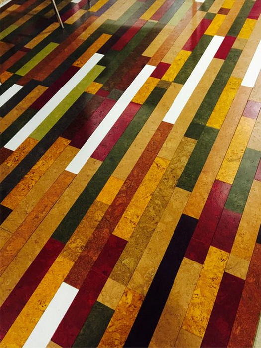 Если Вы все еще думаете, что пробковый пол может иметь исключительно “родной” цвет и фактуру, то просто посмотрите каталоги современного производителя напольных покрытий. Мало того, что сама пробка может иметь различный оттенок, ее еще можно окрашивать специальным тонирующим составом, который наносится на верхний слой и сверху покрывается лаком. Также можно применить фотопечать.
