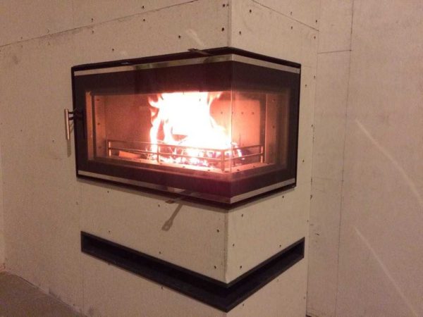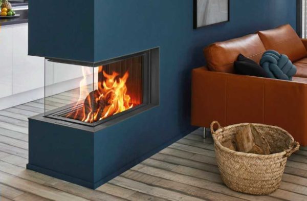 Одна из угловых каминных вставок Kaw-Met с двусторонним стеклом