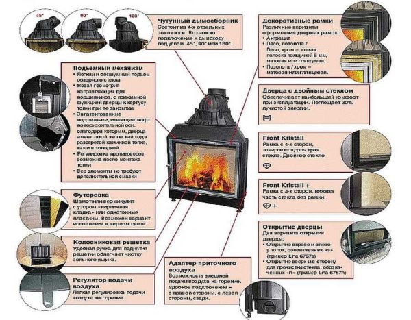 Для примера перечень особенностей немецкой каминной топки Schmid Pano 55 h
