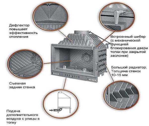 - футеровка чугунными съемными плитами или термостойким материалом (у более дорогих моделей).