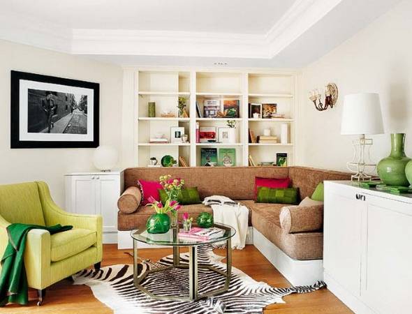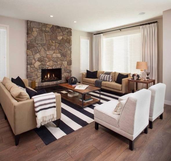 Когда дело доходит до достижения правильной асимметрии, нужно заставить обе стороны комнаты иметь одинаковый визуальный вес относительно центральной линии. При этом, в отличие от симметричного баланса, эти предметы могут кардинально отличаться по форме, цвету и своему количеству. Более того, при асимметрии часто допускается частичное размытие центральной линии, когда, например, журнальный столик или картина немного смещается в сторону относительно камина. Достигнуть баланса в таком случае бывает немного сложней, зато результат получается наиболее приятным, уютным и достойным вашей гордости!
