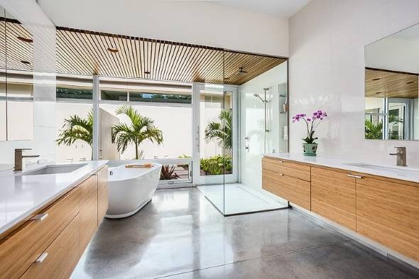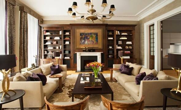 Симметричные интерьеры, представленные на фотографиях ниже, легко понравятся вам с первого взгляда, поскольку содержат простую информацию, на обработку которой нашему мозгу требуется минимальное количество времени. Два дивана по сторонам камина, две прикроватные тумбы по бокам кровати — вот классические примеры симметрии в пространстве. Все, что вам нужно сделать, — это задать центральную линию и зеркально отразить комнату относительно нее. Выбирайте зеркально симметричный дизайн, если хотите увеличить свои шансы на то, что ваши гости будут ахать от восторга!