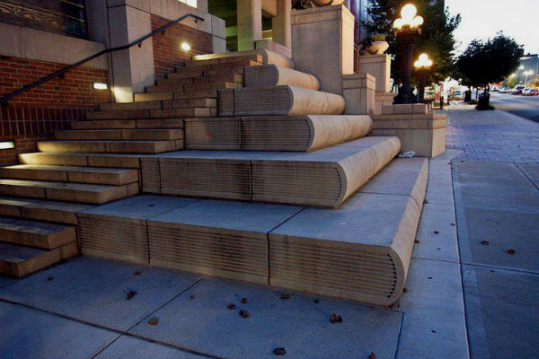 Нынешняя библиотека расположена прямо в центре Канзаса, но так было не всегда, еще в 1873 году библиотечные двери впервые открылись для своих читателей в небольшом здании на окраине города, со временем книжный фонт разросся до масштабных размеров и ему явно требовалось более серьезное по площади хранилище, так в 1999 году библиотека перебралась в пустующее строение Первого Национального Банка, которое выглядело действительно впечатляюще, здесь присутствовали массивные двери, высокие своды потолков, лепнина, резьба по дереву и прочие декоративные премудрости. Но всей этой красоте требовался ремонт, именно поэтому государство выделило средства на его реконструкцию, известно также, что к ремонту приложили руку местные частные предприниматели. И вот в 2004 году жителям Канзаса предстала огромная книжная полка с корешками книг – этот дизайн библиотеки можно увидеть и по сей день, посетив славный Канзас. Высота каждой из книг достигает 7 метров, а ширина порядка 2 метров, то есть размеры действительно впечатляющие, издания изготовлены из прочного материала – термопластика, поэтому не боятся погодных нападок.