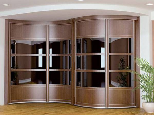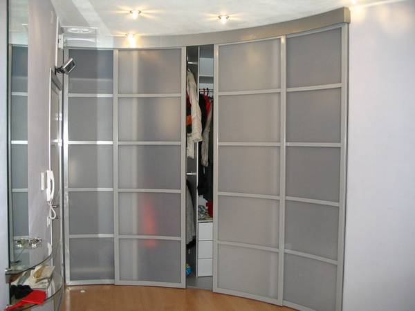 Радиусные раздвижные двери для гардеробной — это новинка на рынке дверных систем. Они имеют сглаженные углы и плавные формы, а также могут быть выполнены с различной кривизной. Двери такой конструкции идеально подходят в тех случаях, когда гардеробная выполнена не отдельным помещением, а в углу комнаты или коридора.