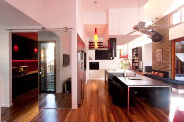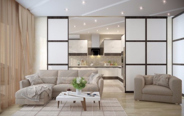 Раздвижные двери между кухней и гостиной занимают мало места, что позволяет экономить пространство в квартире. Немаловажно и то, что такие конструкции могут стать изюминкой любого интерьера, выполняя роль не только двери, но и декоративной перегородки. Раздвижные двери сегодня производятся из надежных и безопасных материалов, они не начинают со временем скрипеть, а также ими невозможно громко хлопать. Радует широкий ассортимент материалов, в сочетании с достаточно легким монтажом. Как вам нравятся эти необычные кухни гостиные с раздвижными дверями на фото?