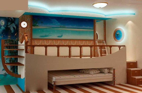 Морская тема актуальна у мальчишек, а еще с двухэтажной кроватью….