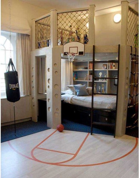 Еще вариант — обыграть спортивные предпочтения молодого человека. Если любит играть в баскетбол — сделать кольца, сетки и т.д., для футболиста потребуются ворота. Только убрать все бьющиеся предметы подальше и защитить хрупкие сетками….