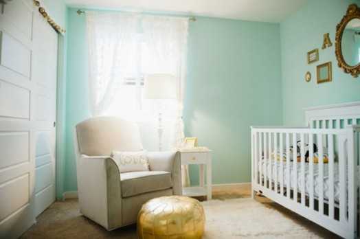 Цвета при разработке интерьера детских для младенцев используются очень мягкие. Часто это белый цвет и его оттенки, с добавлением розового и голубого. На стенах добавляют несколько ярких цветовых акцентов. Такие комнаты после легко трансформируются в более яркие — для подросших и более активных чад.