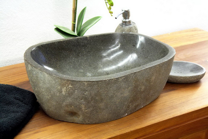 Овальная форма раковины – самая традиционная для нас, вместо привычного фаянса или фарфора, взяли камень — в моде натуральные материалы. Приверженцы эко-стиля во всём ищут гармонию — вода, камень, бамбук.