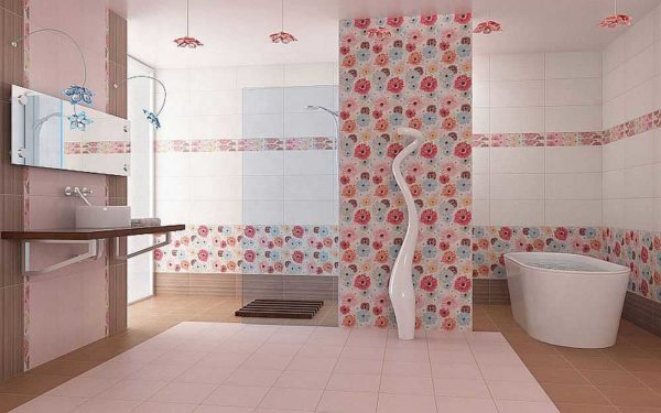 Последние тенденции в дизайне привели к тому, что большая часть кафельной плитки для ванных комнат делают однотонными. Многие коллекции отличаются интересной фактурой, но выполнены в виде однотонных фрагментов. Не всем такое оформление приходится по вкусу — слишком «холодным» получается интерьер. Добавить фантазийности можно при помощи плитки с цветами или бабочками, растительными или геометрическими мотивами.