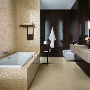 Облицовка ванной комнаты плиткой способствует не только созданию привлекательного внешнего облика помещения, но и, на удивление, может создавать эффекты, требуемые для устранения отрицательных черт помещения. К примеру, вертикальная Раскладка плитки в ванной может визуально вытянуть вверх помещение с низким потолком, а горизонтальная, наоборот, расширить его.