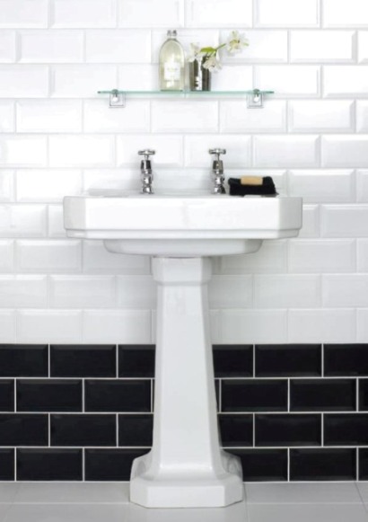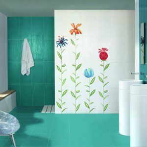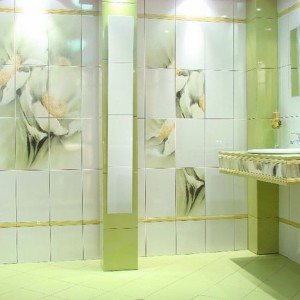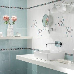 - вертикальным расположением фриз, а также контрастных плиточных полос в углах помещения обычно добавляют ему высоты;
