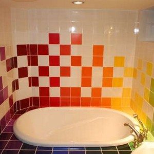 Как правило, применяют плитку без рисунка и одного оттенка, но имеются и другие варианты укладки плитки в ванной, сочетающие различные цвета: