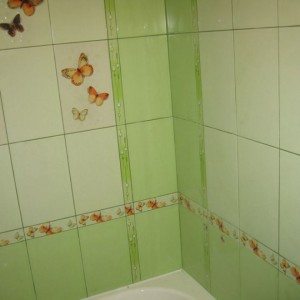 В углах выполняют укладку плитки вертикальными линиями в противоположном относительно базового цвете, увеличивая тем самым визуально высоту ванной.