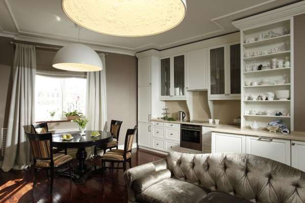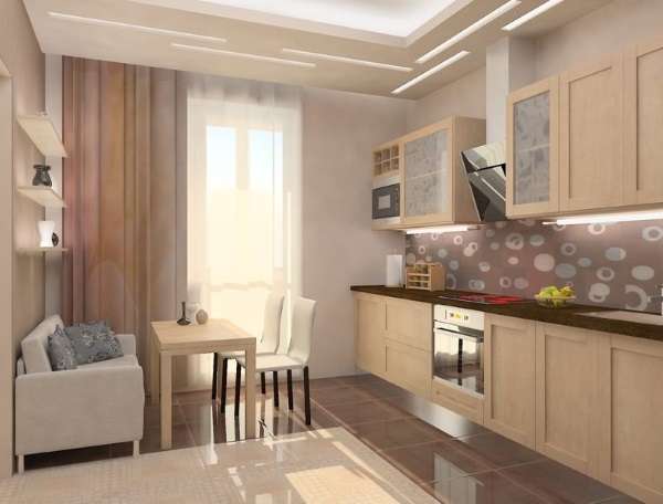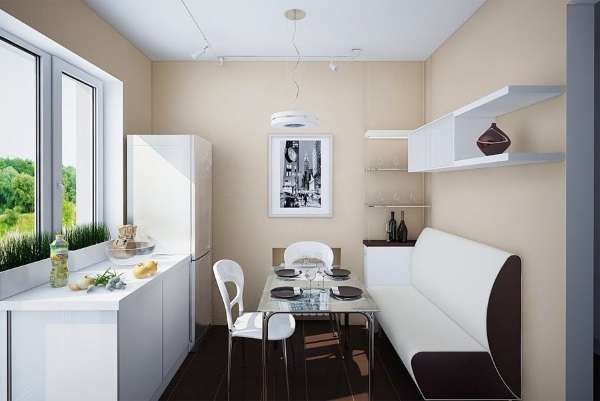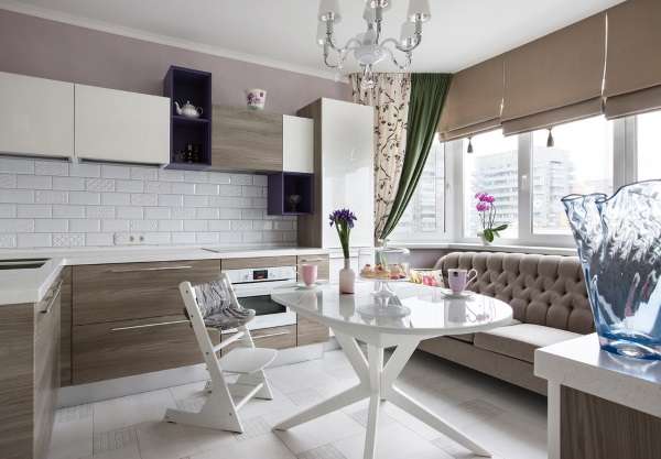 - при наличии на кухне телевизора, раскладной диван станет отличным местом для комфортного времяпрепровождения.