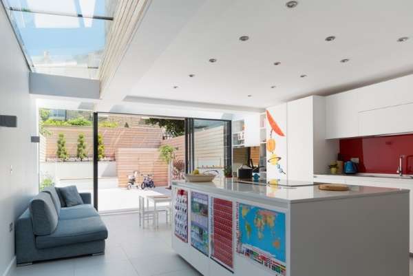 Прямой узкий раскладной диван на кухню хорошо впишется в прямоугольную длинную кухню.