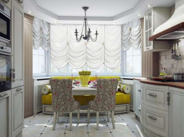 - перепады температуры на кухне способствуют повышению влажности, с которой ткань не очень сочетается;