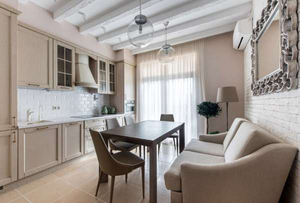 К преимуществам, которые получает хозяин квартиры, устанавливая узкий раскладной диван на кухне, можно отнести: