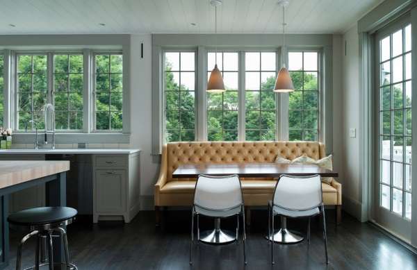 Далее вашему вниманию предоставлены фото интерьеров кухни с диванами различных форм и размеров.