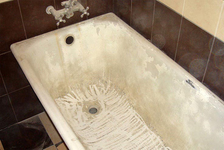 • Цвет ванны стал грязно-желтым вместо белого.