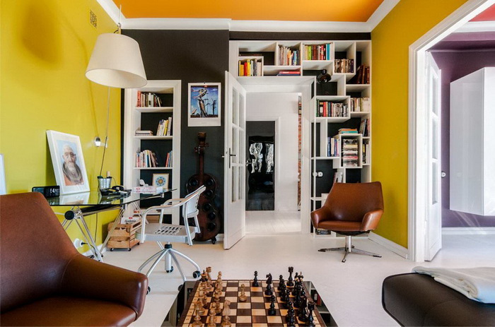 Самой главное, особенной чертой в стиле ретро становится налет времени. Его можно выразить не только в искусно состаренной мебели. Полка со старинными книгами, антикварная посуда, шкатулка, медная газетница старинного образца, медная лампа над столом – все это небольшие, но очень яркие детали.